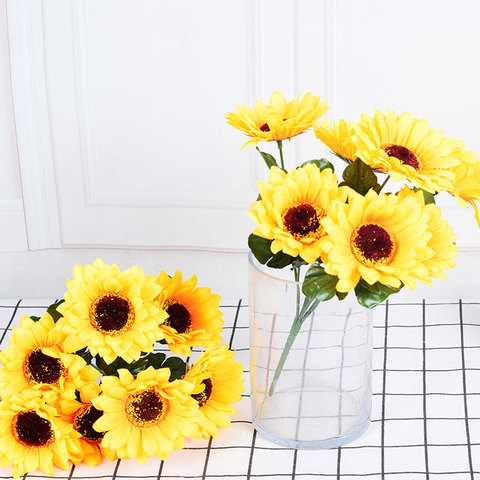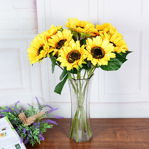 ดอกทานตะวันผ้าไหมเทียมสำหรับงานแต่งงานงานปาร์ตี้ที่บ้าน
