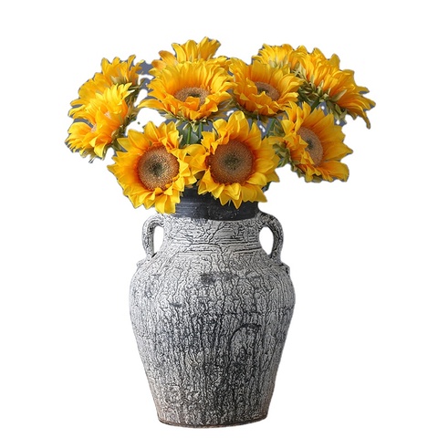 ช่อดอกไม้ทานตะวันประดิษฐ์ขนาด27ซม. ดอกไม้2023ดอกทานตะวันในแจกันสำหรับตกแต่งบ้านและสวนในงานแต่งงาน
